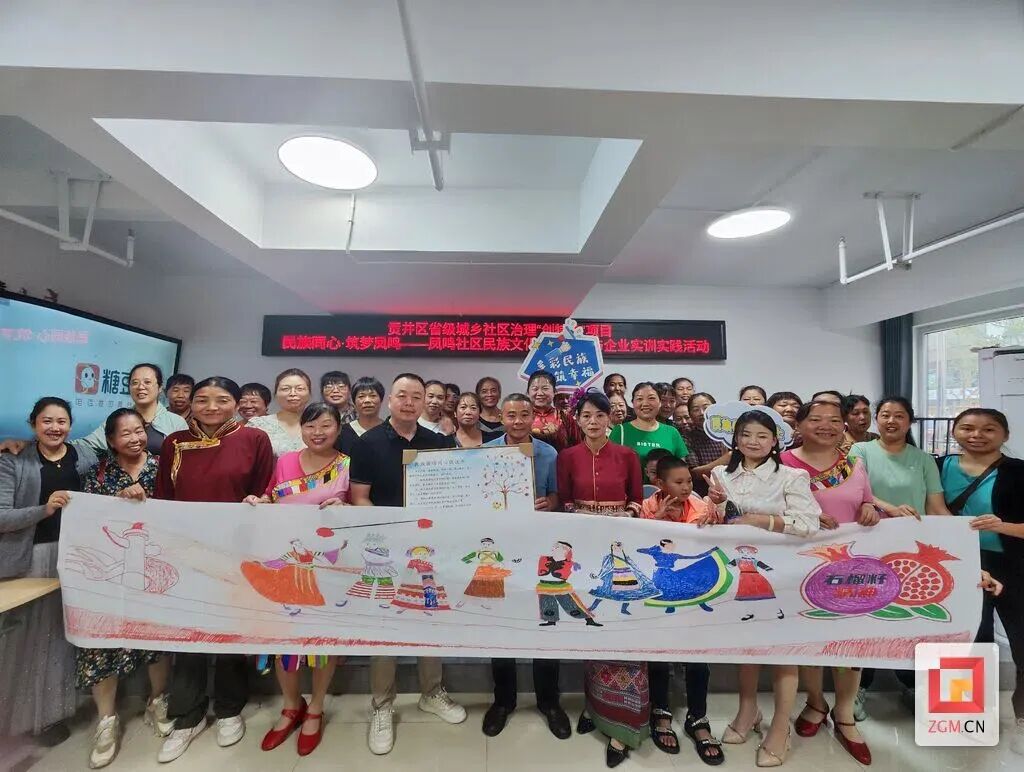 今年以来,作为多民族聚居的“幸福和睦”试点社区,凤鸣社区围绕省级城乡社区治理“创特色”项目要求,持续开展形式多样的民族融合活动。从民族茶话会、非遗剪纸、团扇DIY,到同心结编织、企业实训实践,一系列活动以文化为纽带,将民族团结理念融入居民日常。例如,在“非遗剪纸进社区”活动中,36名居民用剪刀勾勒出象征民族团结的石榴花图案,寄托着对邻里和睦的美好期盼。