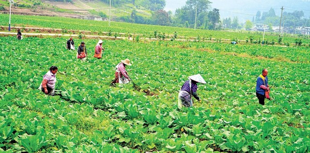 在名山区万亩粮经现代农业园区,800余亩蔬菜基地绿意盎然,40余名工人分散作业,弯腰除草、精准追肥,抓紧秋冬管护关键期,为稳产丰收蓄力。