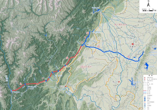 该工程从大渡河泸定水电站库区引水,一路向东穿山越岭,经261公里输水管线,与成都平原主水源岷江在都江堰灌区实现“新老水”携手,形成双水源双通道供水格局。工程多年平均供水15.23亿立方米,涉及省内8市43县(市、区),将新增和改善灌溉面积770万亩,惠及人口超3400万。因此,工程被定位为四川“六横六纵”水网主骨架的重要“一横”、国家20条东西向骨干输排水通道之一,也是国家“两重”建设标志性重大水利工程之一。