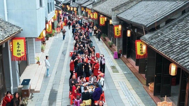 整体街区保护了立体风貌,修复“五街四巷”格局骨架基础上,清末川西民居、计划经济时期公共建筑、改革开放时期个体商铺等多元并存,完成核心区277栋、约4.3万平方米建筑分类更新。