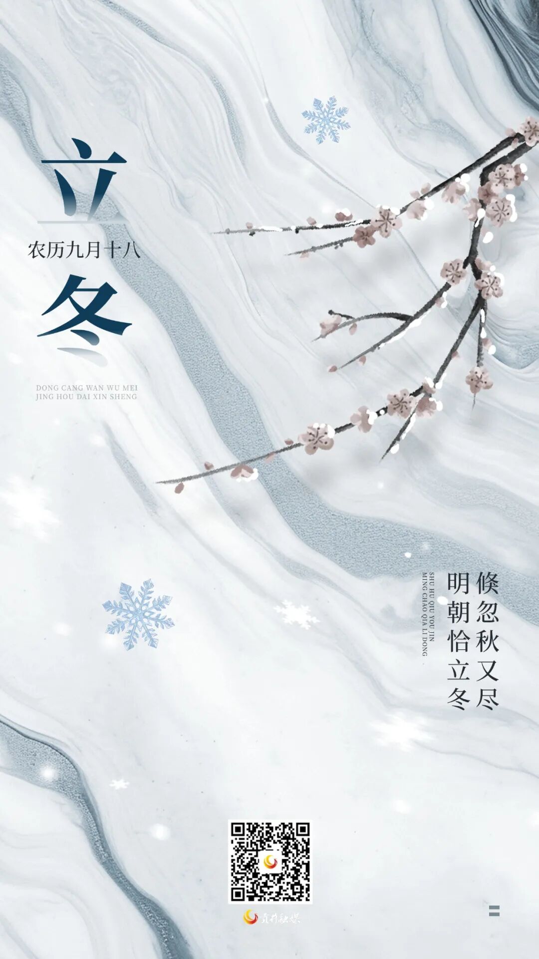 立冬,意味着生气开始闭蓄,万物进入休养、收藏状态。其气候也由秋季少雨干燥向阴雨寒冻的冬季气候转变。