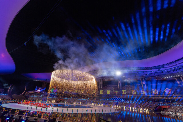 11月9日晚,广州奥林匹克体育中心体育场灯火璀璨,第十五届全国运动会开幕式在此盛大启幕。这是首次由粤港澳三地联合举办的全国性大型综合赛事,也是历史上规模最大、赛期最长、承办城市最多的一届全运会。