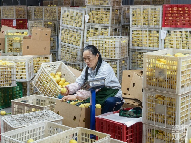 四川外檬国际贸易有限公司工厂内,工人正在打包柠檬。