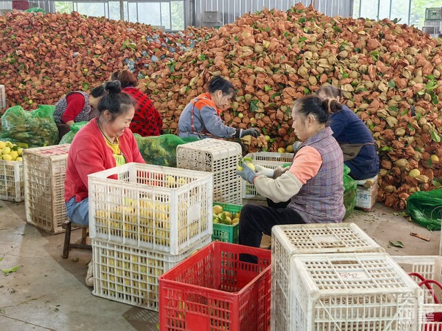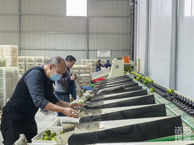四川柠之恋果业有限公司工厂内,工人正在分拣柠檬。