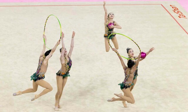晚些时候,深圳市坪山体育中心体育馆举行的艺术体操也传来好消息。在集体全能3球2圈决赛中,以成都体育学院为班底组建的四川队5名姑娘何欣叶、肖明欣、谭粤月、陈佳琪、赵红玉发挥出色,拿到全场最高的26.65分,为四川省体育代表团再贡献一枚金牌,同时也为本届全运会艺术体操比赛画上一个完美句号。