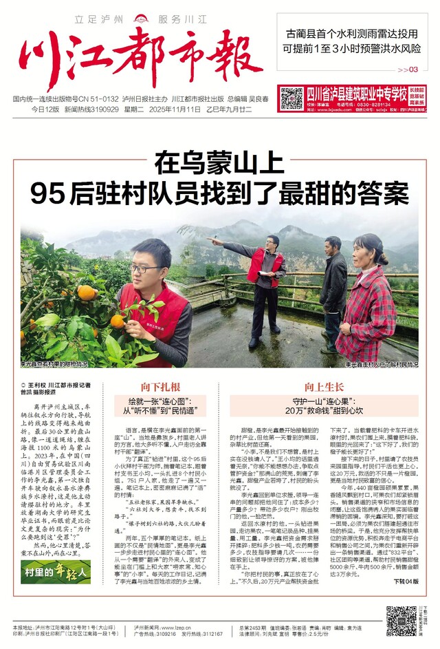 对于李光鑫而言,驻村早已不是一份工作。在这里,他把“理论”变成了“实干”,把“陌生”变成了“牵挂”。水潦村的晨雾、橙园的花香、村民的乡音,已成为他心中最温暖的光,和深深眷恋的“第二故乡”。
