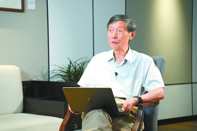 陈立泉院士接受南充市融媒体中心记者采访。南充市融媒体中心记者梁洪源摄