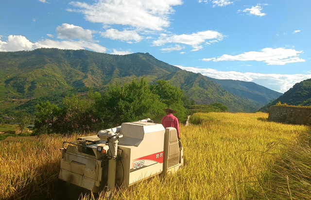 2023年10月,鼎信集团大型机械开进后山,316亩“望天田”开始平整。一年后,220余亩梯田式水田铺展,2座抽水泵房、3.6公里管网同步建成;又一年后,迎来第一季水稻丰收。