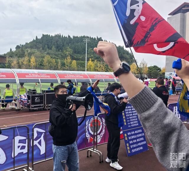 杨博与球迷们奋力为资阳队加油。