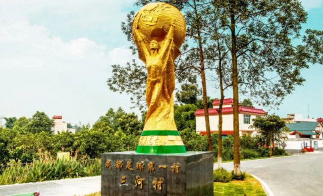 三河村村口“成都足球第一村”雕像