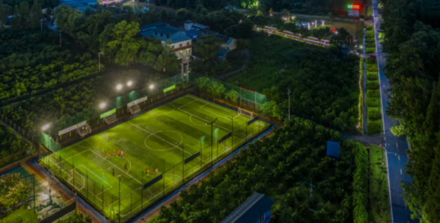 夜幕下的三河村足球场