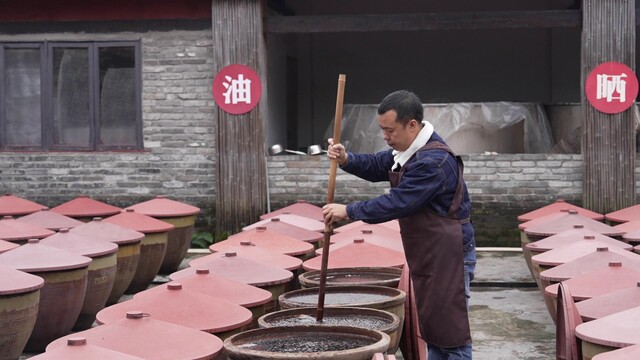 刘畅曾是一名早出晚归的销售员,很难兼顾家庭。一次听到村书记讲述乡村振兴故事,让他深受触动。“我的老丈人是制酱行家,总念叨着要把‘小时候的味道’传下去。”恰逢村里规划“乡村十八坊”,让老手艺迎来“重生”的机会,刘畅毅然决定返乡。