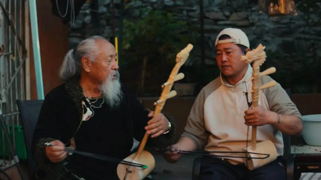 高绒在教年轻人拉弦胡