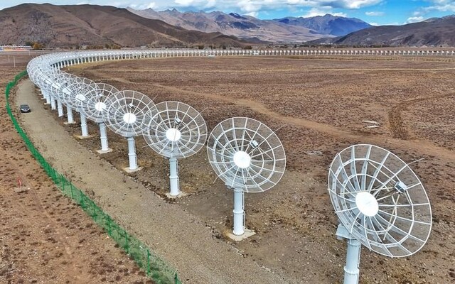 稻城县城不远的傍河边,目前全球规模最大的综合孔径射电望远镜——直径1公里、313个6米口径天线组成的“圆环阵”逐日而动,为提升空间天气精准预报能力提供重要支撑……