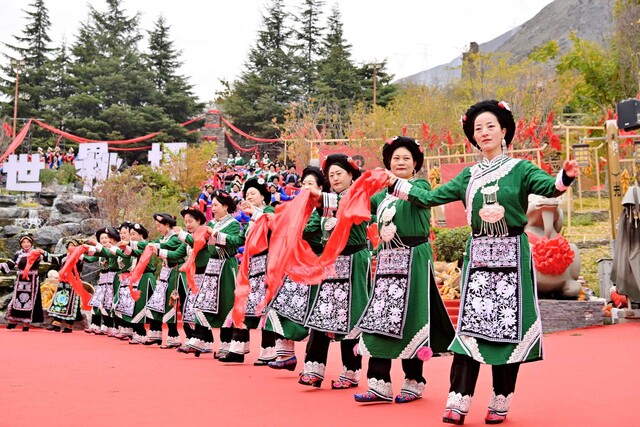 在桃坪羌寨的老寨里,羌族传统长桌坝坝宴热气腾腾。传统“羌族九大碗”菜肴蕴含着吉祥寓意,承载着羌族群众对自然的敬畏之心与世代相传的生活智慧。席间,本地羌族群众与远道而来的游客相互敬酒,齐唱羌族祝酒歌,共庆新年的到来。