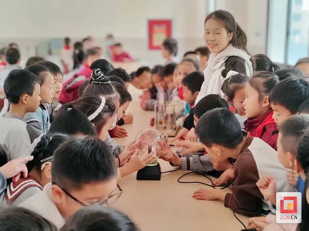 首场活动中,专业科技教师引导学生观摩等离子电磁炮的炫目光弧、泡泡秀的梦幻场景、静电离子闪光球的神秘辉光等十多个科学魔术。在“烈焰火掌”实验环节,当老师手掌瞬间燃起火焰却毫发无伤时,孩子们激动地欢呼:“原来科学可以这么酷!”