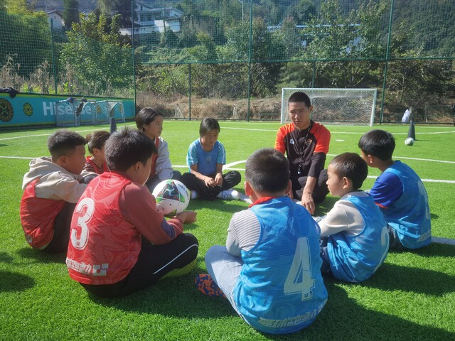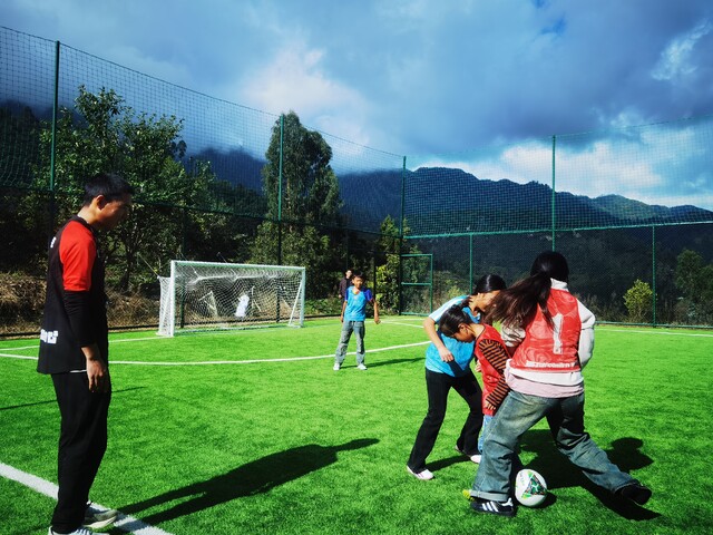 今年3月起,他又成为甘洛县普昌初级中学的一名足球教练,每周负责给该校学生上两节足球课。