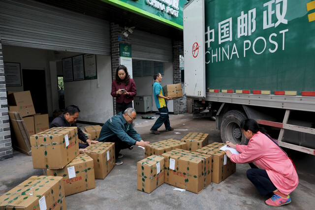 “过去没有这么方便。”李松说,他以前要用泡沫箱把农产品包装好,开车半小时送到华蓥城里去办理托运,然后再通知客户取货。如今村上设立了邮政快递服务站点,周边村民在家门口就能将土特产售卖到全国各地,方便快捷。
