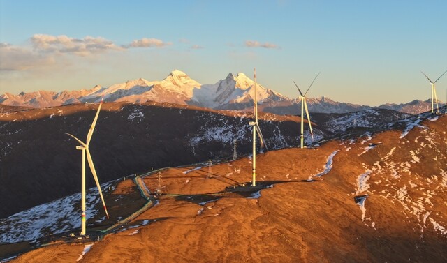 全球在运海拔最高风电项目——华电琼结风电项目。东方风电供图