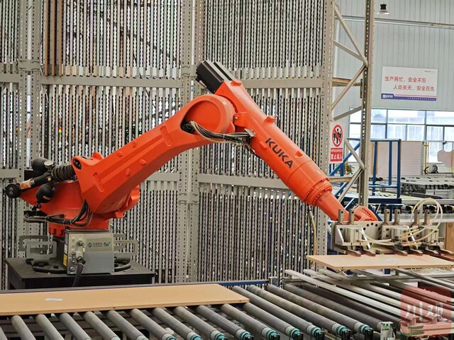 另一头,四川亚度家具有限公司板材生产车间内的滚筒输送线上,大小、长短、厚薄不同的板材快速运转,扫描材料上的二维码后“各到各家”,进入开料、封边、打孔等工序。
