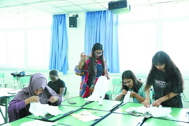 川北医学院留学生体验扎染(资料图)。南充市融媒体中心记者梁洪源摄