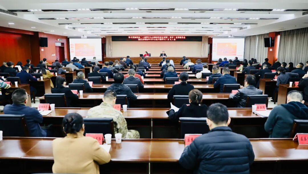 张洪涛指出,学习好、宣传好、贯彻好党的二十届四中全会精神,是当前和今后一个时期的重大政治任务。全区上下要提高政治站位,深刻领会全会精神实质,站在坚定拥护“两个确立”、坚决做到“两个维护”的政治高度,深入学习领会全会精神,准确把握其核心要义、丰富内涵和实践要求,切实把思想和行动统一到党中央决策部署和全会精神上来。要深入宣传宣讲,迅速掀起学习贯彻热潮,在全区上下多形式、多层次、多角度、全覆盖地宣传宣讲全会精神,确保全会精神走进干部群众、广泛深入人心。要坚持以学促行,抓好全会精神贯彻落实,把学习贯彻全会精神与贯彻落实党中央、省委、市委决策部署和工作要求结合起来,奋力抓好当前各项重点工作,为“十五五”开好局、起好步打下坚实基础。