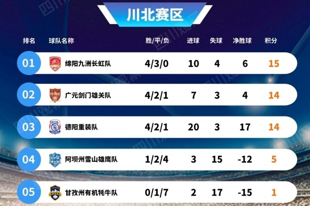 已经提前出线的绵阳九洲长虹队将主场迎战已经提前出局的阿坝州雪山雄鹰队,毫无压力的两队大可放开手脚踢出精彩。而德阳重装队将主场迎战广元剑门雄关队,这也是本轮的绝对重头戏。广元队虽然进球不多,但在首回合与德阳队交手时取得了胜利,这也让他们在积分相同的情况下排在了德阳队身前。本场“生死战”,广元队客场打平即可出线,德阳队则必须在主场取胜才能实现反超。谁能最终搭上总决赛的“末班车”?让我们拭目以待!