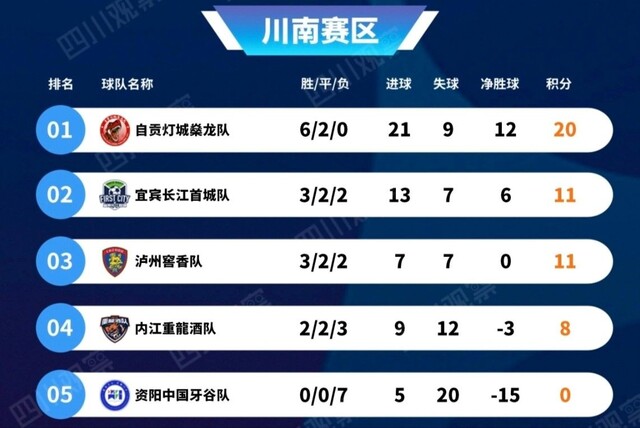 从夏末到深秋,“川超”已在不知不觉中陪伴了我们两个月。此前九轮,已经有7支优秀的球队从各自赛区突围,杀入了明年的总决赛。本周,分区赛将进行最后9场比赛,川北的广元、德阳和川南的宜宾、泸州将争夺最后两个出线名额!其余已经晋级或淘汰的球队,也希望用精彩的表现为本阶段画上圆满的句号。