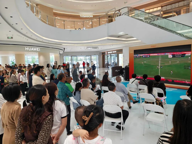 遂宁万象汇商场设置了观赛区,现场大屏幕实时转播比赛画面,吸引不少市民驻足观看。全媒体记者 黄铂晶/摄