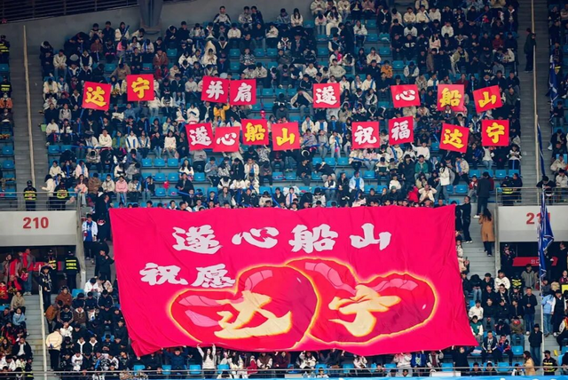 遂宁球迷准备的“达宁”CP大型横幅。陈海龙/摄