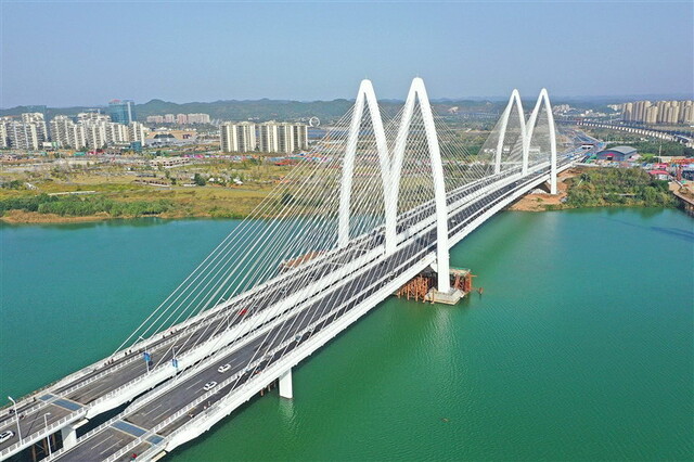 作为遂宁首座双塔五跨混凝土梁斜拉桥,涪江六桥的建成通车,实现了遂宁桥梁建设技术的历史性跨越,在全国桥梁工程领域写下创新篇章。