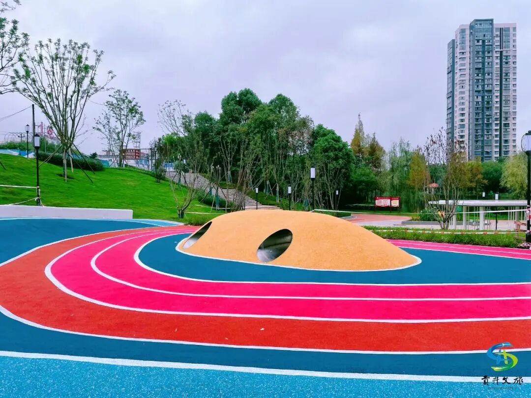 公园内绿树成荫,花团锦簇,水天一色,风景如画。建有篮球场、乒乓球场,是运动爱好者的竞技场,儿童乐园让孩子们尽情玩耍,健康步道环绕湖水一周,是市民休闲娱乐的好去处。
