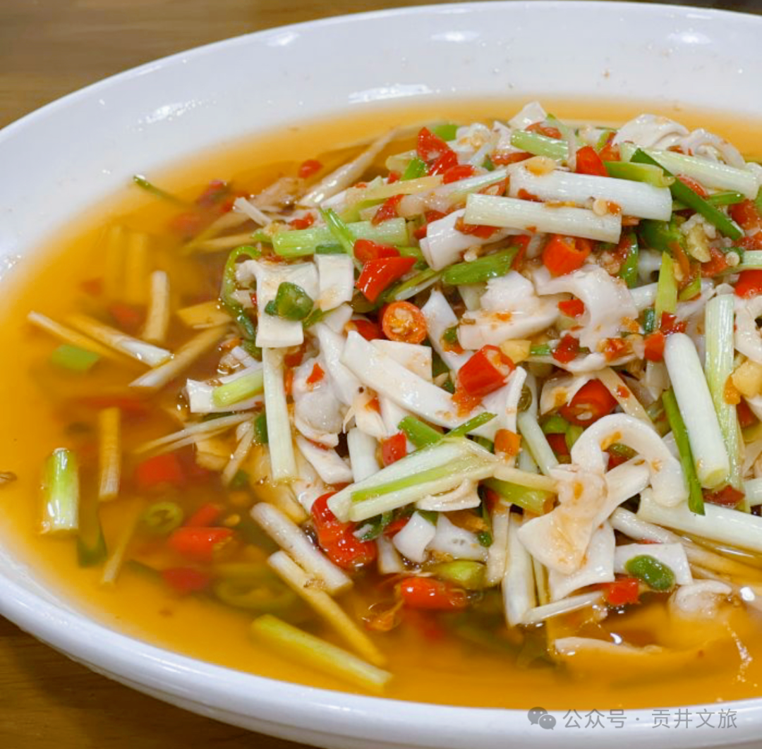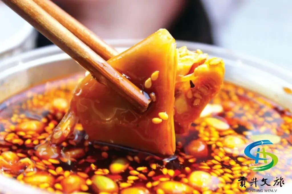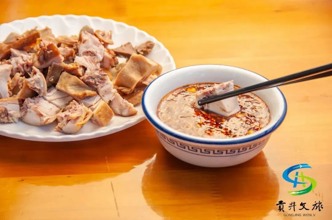 独门蘸水,香绝贡井,现宰现卤,极致鲜嫩。蘸水中的香脆花生米、瓜子仁、炸豌豆,入口就是麻辣鲜香的冲击。