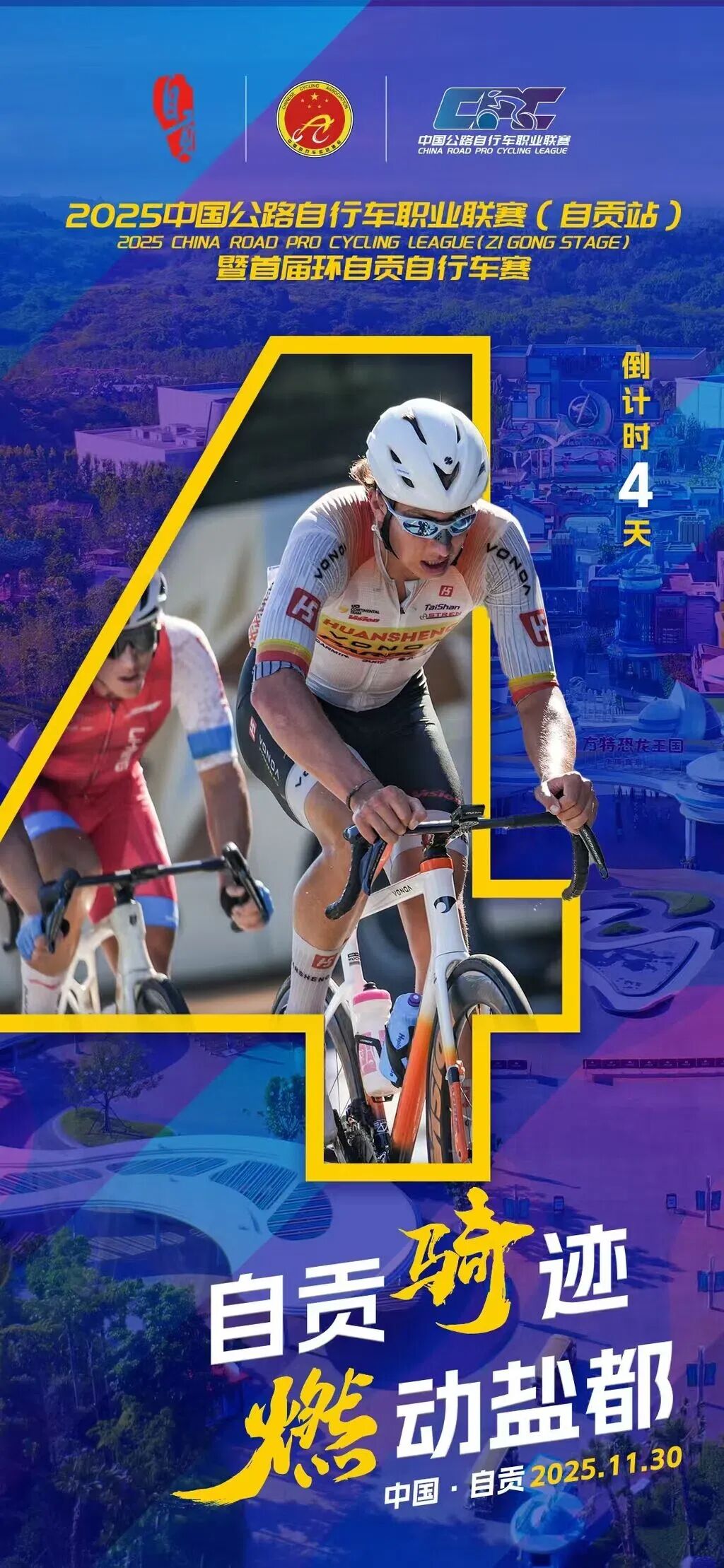 2025年中国公路自行车职业联赛(自贡站)暨首届环自贡自行车赛,将于11月30日在自贡市燃情启幕。赛事由中国自行车运动协会与自贡市人民政府联合主办,届时150余名国内顶尖职业车手将齐聚盐都,展开一场速度与激情的精彩较量。