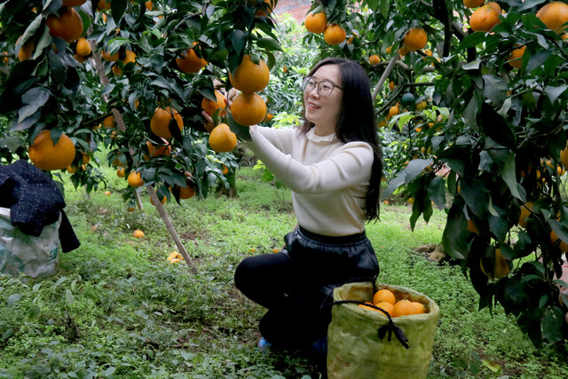 桂花村村民李连明从上世纪80年代开始种植柑橘,起初仅利用自家土地种植了3亩,以椪柑、无核橘为主。2016年,为方便柑橘储存,李连明专门在屋前修建了一个库房。2018年,李连明将附近村民闲置的土地利用起来,规模化种植爱媛、砂糖橘等,种植面积逐步扩大到30亩。平时他一个人在村上管护柑橘,每年3至5月最忙的时候,李连明便雇佣五六位村民打理果园,向每人每天支付80元工资。最近,李连明大部分时间都在果园忙碌,除了采摘,还用三轮车为客户送货。