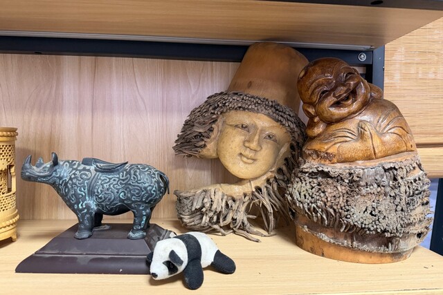 走进黄建的工作室,案台上、博古架上摆满了竹雕作品:有雕着龙凤呈祥的笔筒,有山水亭台错落的摆件,不少作品包浆温润,透着岁月痕迹。