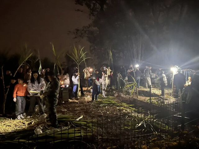 24日当晚,有近50人组团从绵阳驱车专程前来玩“果园大冒险”。从晚上8点半持续到深夜12点,这个小小的丘陵上,惊呼声与欢笑声一直持续。