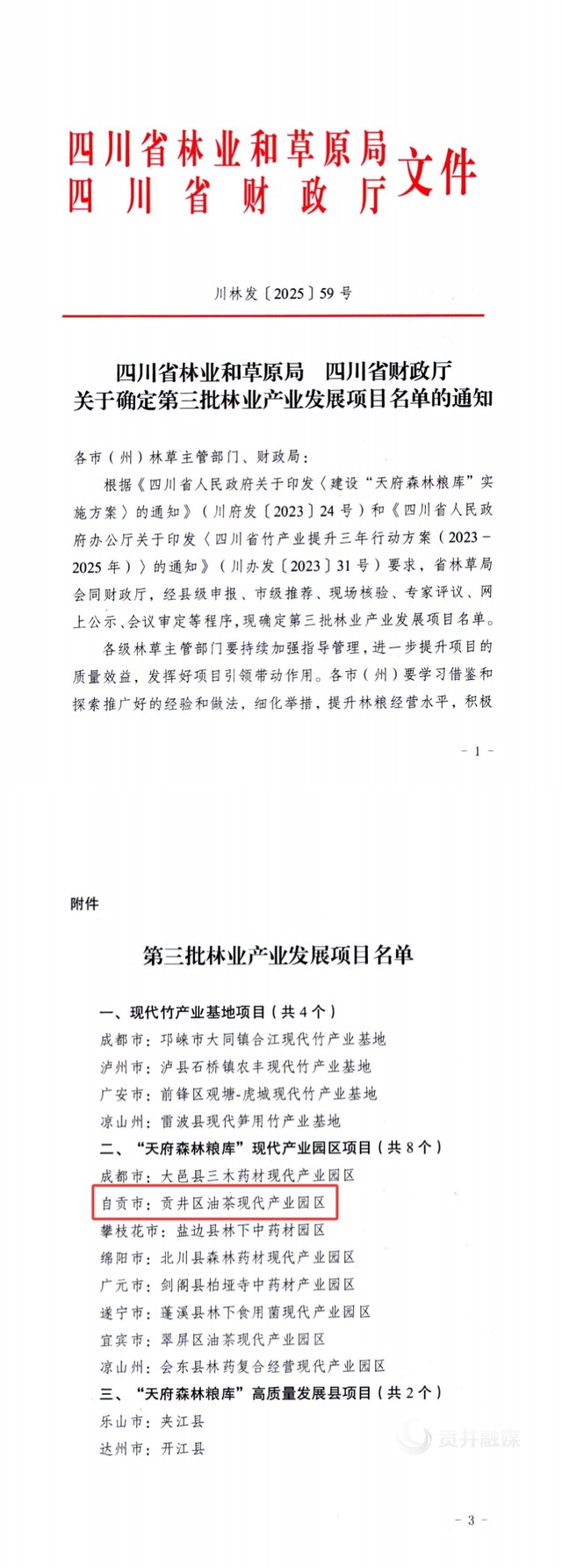 此次全省共8县入选林业现代产业园区名单,贡井区油茶现代产业园区为自贡市唯一上榜园区,也是自贡市近三年唯一入选省级林业园区。