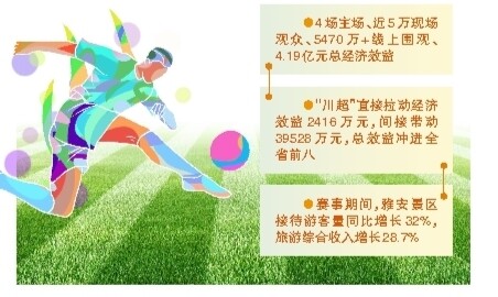 作为“川超”承办城市之一,雅安用实力交出亮眼答卷:4场主场赛事场均上座率超95%,200余个商圈、社区“第二观赛点”人气爆棚,线下参与人次高达48.29万!更给力的是,赛事直接拉动经济效益2416万元,间接带动39528万元,总效益冲进全省前八。