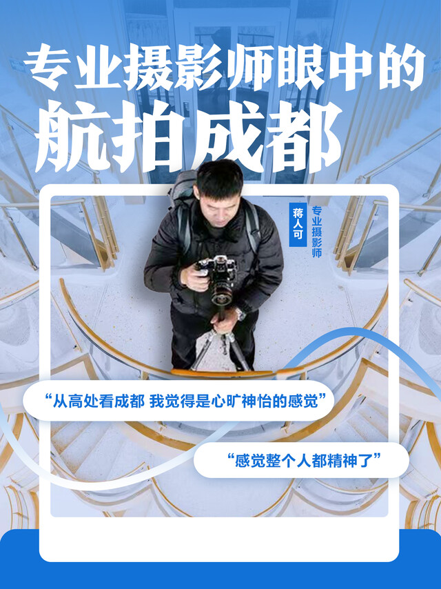 在成都,摄影师蒋人可凭借独特视角与执着热爱,用七年时光在高空为成都勾勒出万千姿态,成为城市影像的记录者。