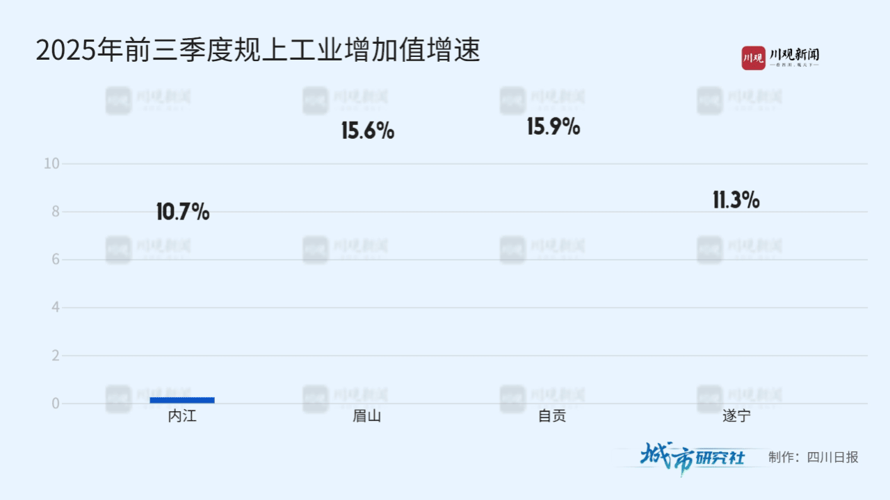 今年前三季度,眉山以7.1%的增速一马当先,是全省唯一“破7”的市州。遂宁以6.7%的增速,创下近6年来最好的增速排位,位列全省第二,多项指标领跑“川中四市”。自贡以6.6%的增速紧追不舍,位列第三。内江亦表现出色,以6.4%的增速跑进全省前五。