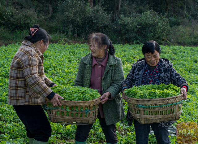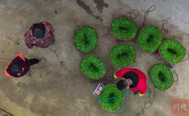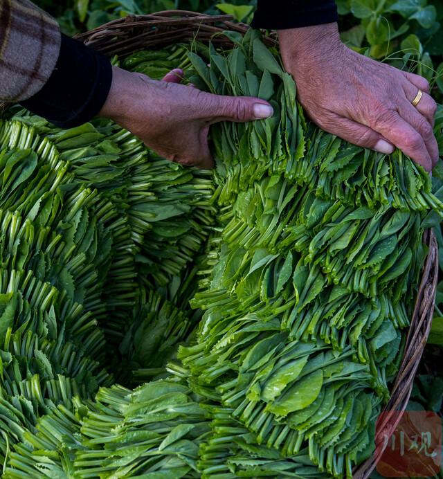 据当地农户介绍,这种叠码豌豆尖的方法一直是本地独有的技艺。凭借其特殊的保鲜效果,带着晨露的豌豆尖当天下午便能出现在成都、重庆的市场上,让市民品尝到那份源自田间的清香。
