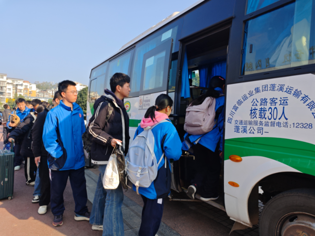11月28日,星期五,初冬的暖阳温柔地洒在青春的校园。当天15时,几辆客车缓缓驶入遂宁市蓬溪中学,停靠在德才广场。随着下课铃声的响起,归家心切的学子,快步朝广场的客车走去。