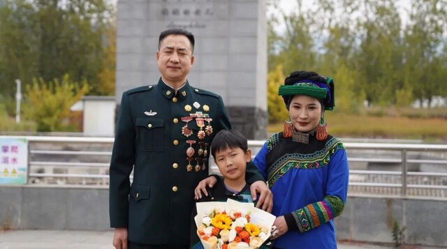 没过多久,带着满身荣誉的约其依落出现在亲友的视线里,他身姿挺拔,胸前的勋章与证书熠熠生辉。他坚定地喊道:“老婆同志!原中国人民解放军火箭军约其依落,2007年12月入伍,2025年12月服役期满,已退出现役,请指示!”话语中,带着哽咽。“老公,欢迎你回来!”这句话,在沙梅心里默念了无数次、练习了无数遍,结婚十年后,终于脱口而出。两人深情相拥,沙梅小心翼翼地从口袋里掏出提前做好的荞麦馍馍,约其依落眼眶湿润。