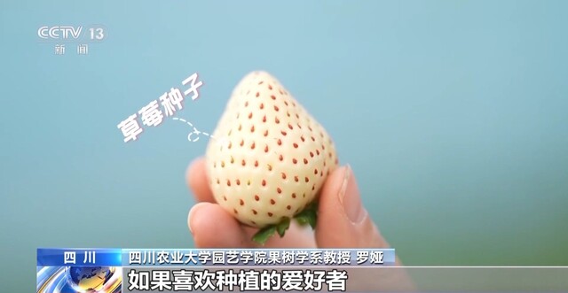 四川农业大学园艺学院果树学系教授 罗娅:草莓的小“芝麻点”就是它的种子,喜欢种植的爱好者可以把小草莓籽种到土里。第二年,它仍然可以开花结果,形成新的草莓植株。