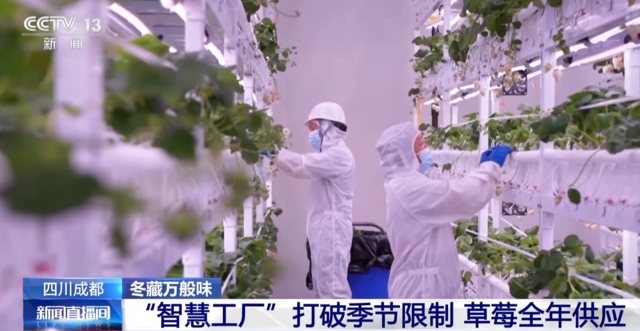 四川的冬草莓采摘时间一般是从11月持续至次年4月。但是在成都温江的智慧“草莓工厂”,却打破了这个限制,365天都可以采摘,年产量是传统种植的三四十倍。