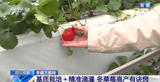 草莓是一边开花,一边结果,采摘时间能一直持续到明年的四五月份。在现场,有工作人员正在进行修枝、疏花疏果,同时还在释放捕食螨,用这种方式控制螨虫和病害,让草莓长得更健康。目前整个成都市冬草莓种植面积超过4万亩,产量达到7万吨以上。现场有很多游客前来采摘,这里已经变成了集休闲采摘、科普体验和冬季旅游于一体的草莓乐园。现代农业科技与自然的结合,不仅让草莓产量更高、味道更好,也让成都的冬天多了一份甜蜜和活力。