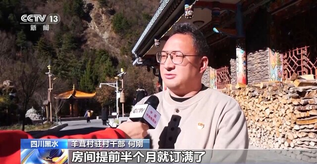 羊茸村驻村干部 何刚:旅游旺季的时候房间提前半个月就订满了,去年我们民宿集体收入达到了620万元,平均到每户分红最少的都有8万多元。