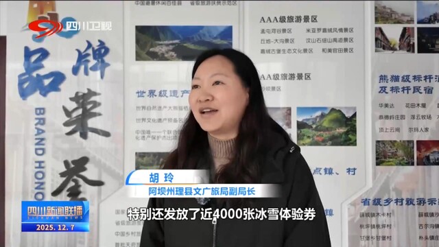 阿坝州理县文广旅局副局长 胡玲:特别还发放了近4000张冰雪体验券,让游客朋友们体验到我们超值的冰雪项目。