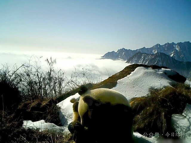 镜头前,一只雌性大熊猫怀抱幼崽,在红外相机前安然小憩。片刻休整后,它小心翼翼地将幼崽衔在口中,缓步前行,最终消失在九顶山翻涌的云海之间,温馨又充满野趣。这是继2021年绵竹发现雌性大熊猫带崽影像以来,第二次拍摄到的高清视频影像。
